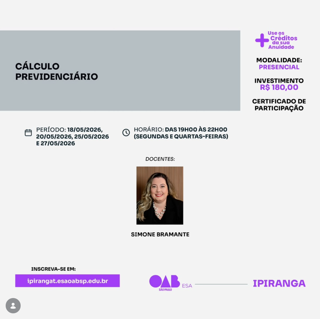 A ESA OAB Ipiranga : Curso Cálculo Previdenciário